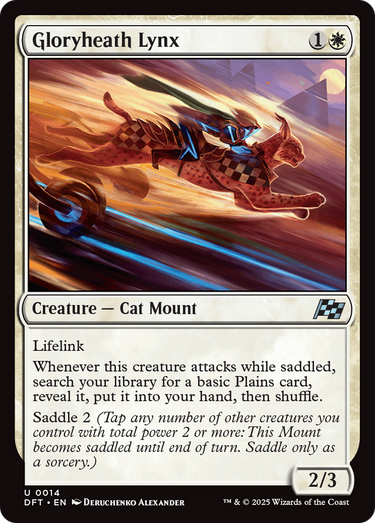 Whenever this creature attacks while saddled, search your library for a basic Plains card, reveal it, put it into your hand, then shuffle.