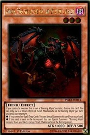 - If this card is sent to the Graveyard: You can Special Summon 1 "Burning Abyss" monster from your Deck, except "Graff, Malebranche of the Burning Abyss".