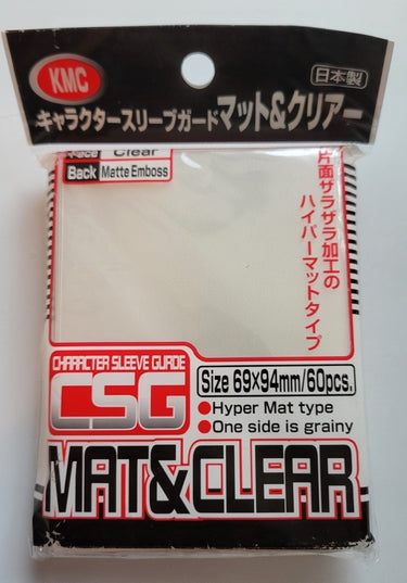 60 regular size card sleeves - 69x94mm. KMC Card Sleeves, Card Barrier Character Sleeve Guard Matte & Clear, 60 sleeves.