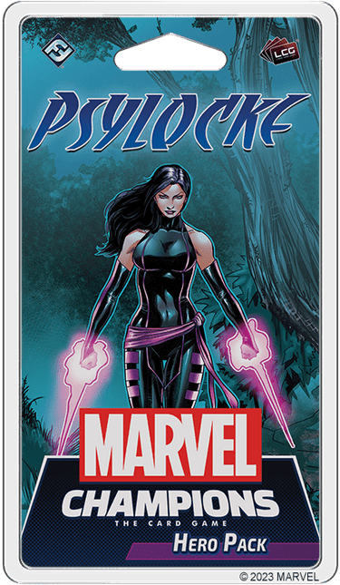 A powerful telepath and skilled martial artist, Psylocke’s psionic knives can cleave her enemies’ minds as easily as her katanas cut through their armor. As a member of both X-Force and the X-Men, she is willing to go to any lengths—and would even lay down her life—for her team. Now, Psylocke powers her way into your games of Marvel Champions: The Card Game! By switching between her Psi-Knives and Psi-Katantas, Psylocke can boost her ATK or THW stats to fit her needs, giving her unparalleled versatility. Within this Hero Pack, you will find Psylocke, her seventeen signature cards, and a full assortment of Justice cards inviting you to thwart the villains’ schemes.