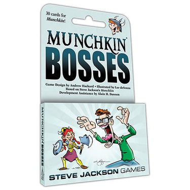 You're pretty good at Munchkin — stabbed some friends, looted some rooms, killed a few monsters, won some games — and now you think you're ready to take on the boss monsters. Well, look no further as Munchkin Bosses has all of the epic monster boosters and munchkin buffers to provide any player with a battle royale (with cheese). Add this special expansion deck to any Munchkin game and get ready to be bossed!