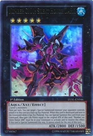 3 Level 5 monsters // Once per turn: You can target 1 Special Summoned monster your opponent controls; attach it to this card as a face-up Xyz Material. When this card is destroyed and sent to the Graveyard while it has Xyz Material: You can Special Summon this card from your Graveyard, then gain Life Points equal to the original ATK of this card. "Number 101: Silent Honor ARK" must be in your Graveyard to activate and to resolve this effect. If this card is Special Summoned this way, it cannot attack for the rest of this turn.