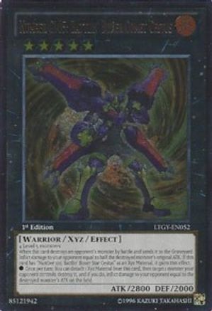 •Once per turn: You can detach 1 Xyz Material from this card, then target 1 monster your opponent controls; destroy it, and if you do, inflict damage to your opponent equal to the destroyed monster's ATK on the field.
