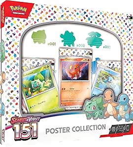 | Included components | The Pokémon TCG: Scarlet & Violet—151 Poster Collection includes:, 3 Pokémon TCG: Scarlet & Violet—151 booster packs, A code card for Pokémon TCG Live, 1 poster with a Scarlet & Violet—151 theme, 3 foil promo cards featuring Bulbasaur, Charmander, and Squirtle |