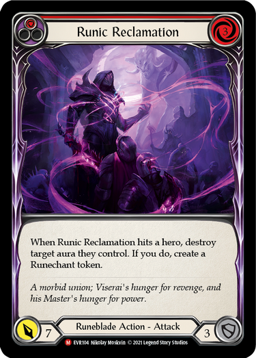 When Runic Reclamation hits a hero, destroy target aura they control. If you do, create a Runechant token.