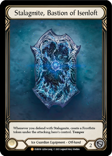 Whenever you defend with Stalagmite, create a Frostbite token under the attacking hero's control. Temper