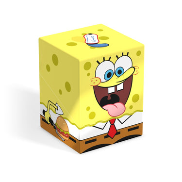 Collectible box for storing TCG decks, tabletop gaming accessories, and/or collectibles. The SpongeBob Fry Cook Squaroe from the SpongeBob SquarePants™ edition holds up to 100 cards in double protective sleeves if used as a deck box. Squaroes are made from 78% renewable resources and fit perfectly into the separately available Collectors Case.